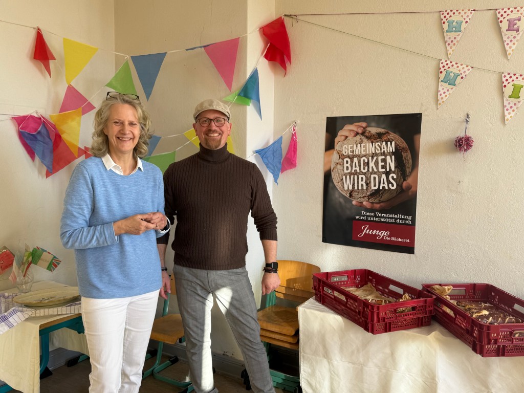 „Ich habe zusammen mit anderen Eltern von der Stadtbäckerei Junge gespendete Laugenstangen an die Kinder ausgegeben.“
