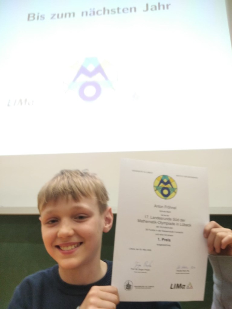 Lieber Anton, die Schule Marli gratuliert dir sehr herzlich zu deinem Sieg auf der höchsten Ebene dieses Wettbewerbs für dein Alter! Wir sind alle sehr stolz auf dich.